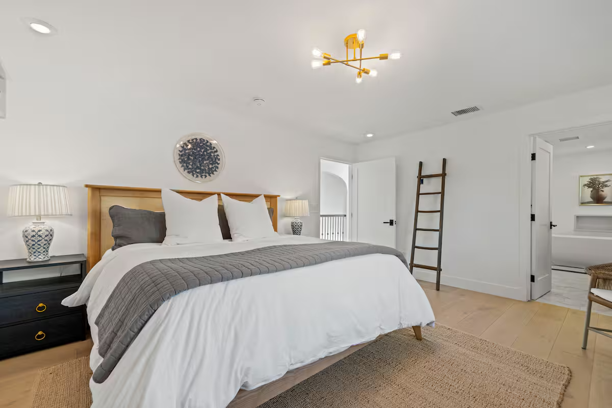 King bedroom with Jack & Jill bath: Calm and coastal cowgirl vibes, this inviting king suite is ideal for restful sleep and shares a Jack and Jill bath with the neighboring Cactus Bloom Room.